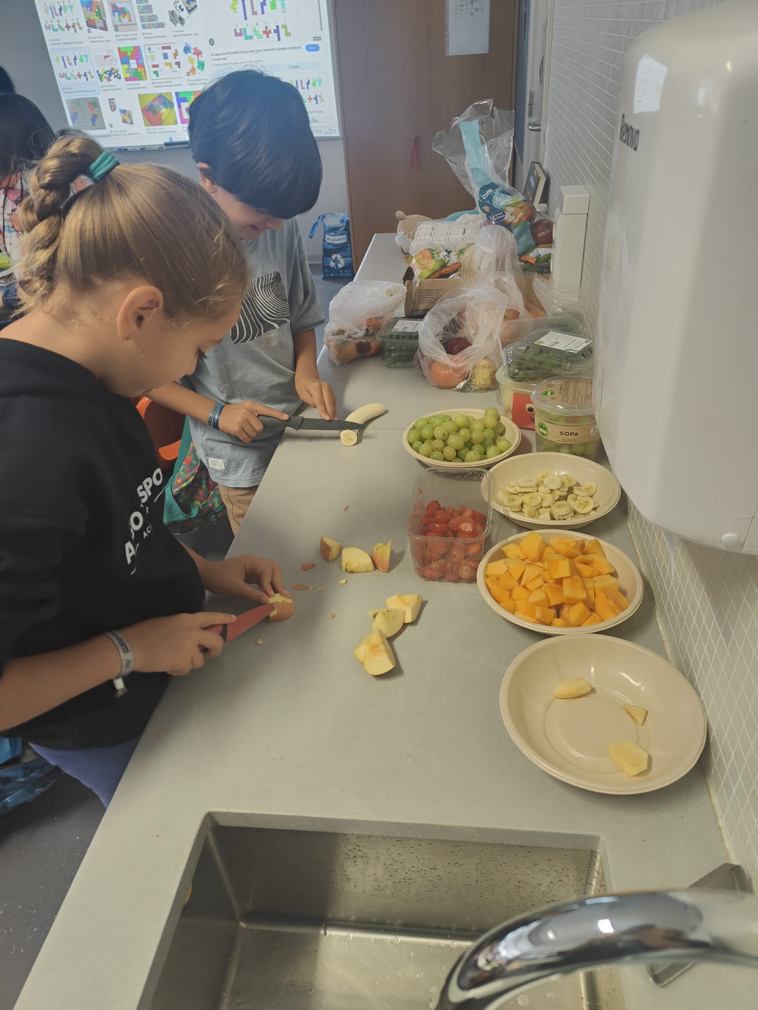 A propósito deste dia, a turma do 4ºB e a Prof. Maria José prepararam deliciosas e saúdaveis espetadas de frutas.