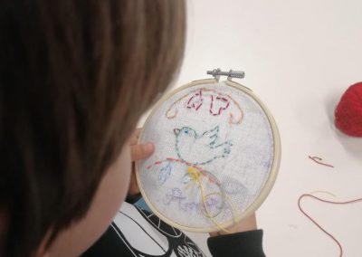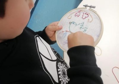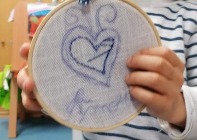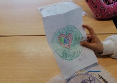 Nas últimas sessões do projeto “O Artesanato Vai à Escola” (Pré-Escolar) os nossos aprendizes de costura estiveram a bordar lencinhos dos namorados. Primeiro estiveram a falar sobre a tradição dos lencinhos: uma tradição antiga do Minho que servia para transmitir declarações de amor. A rapariga apaixonada bordava o seu lenço e oferecia-o ao seu amado quando este tinha de se ausentar.
