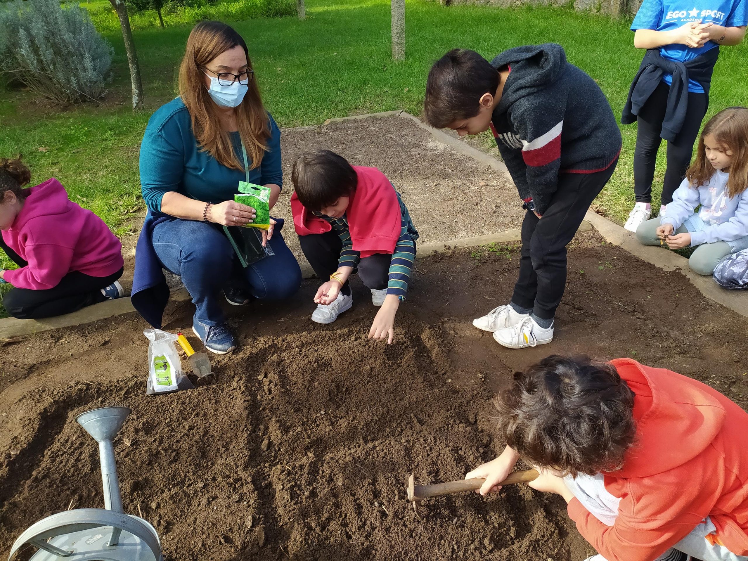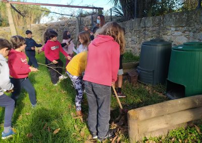 Na sequência dos trabalhos de pesquisa do 4ºB sobre a Compostagem…hoje a horta teve início na sala do núcleo rural sobre este mesmo tema, onde puderam falar sobre o tema. Posteriormente fomos até ao espaço, recolher folhas e paus, para alternar com os verdes…fizermos sementeiras de rabanetes, nabos e couve. Os alunos trouxeram um saco, um recipiente para uma horta vertical (para fazerem em casa) e informações relativas ao orgânico.