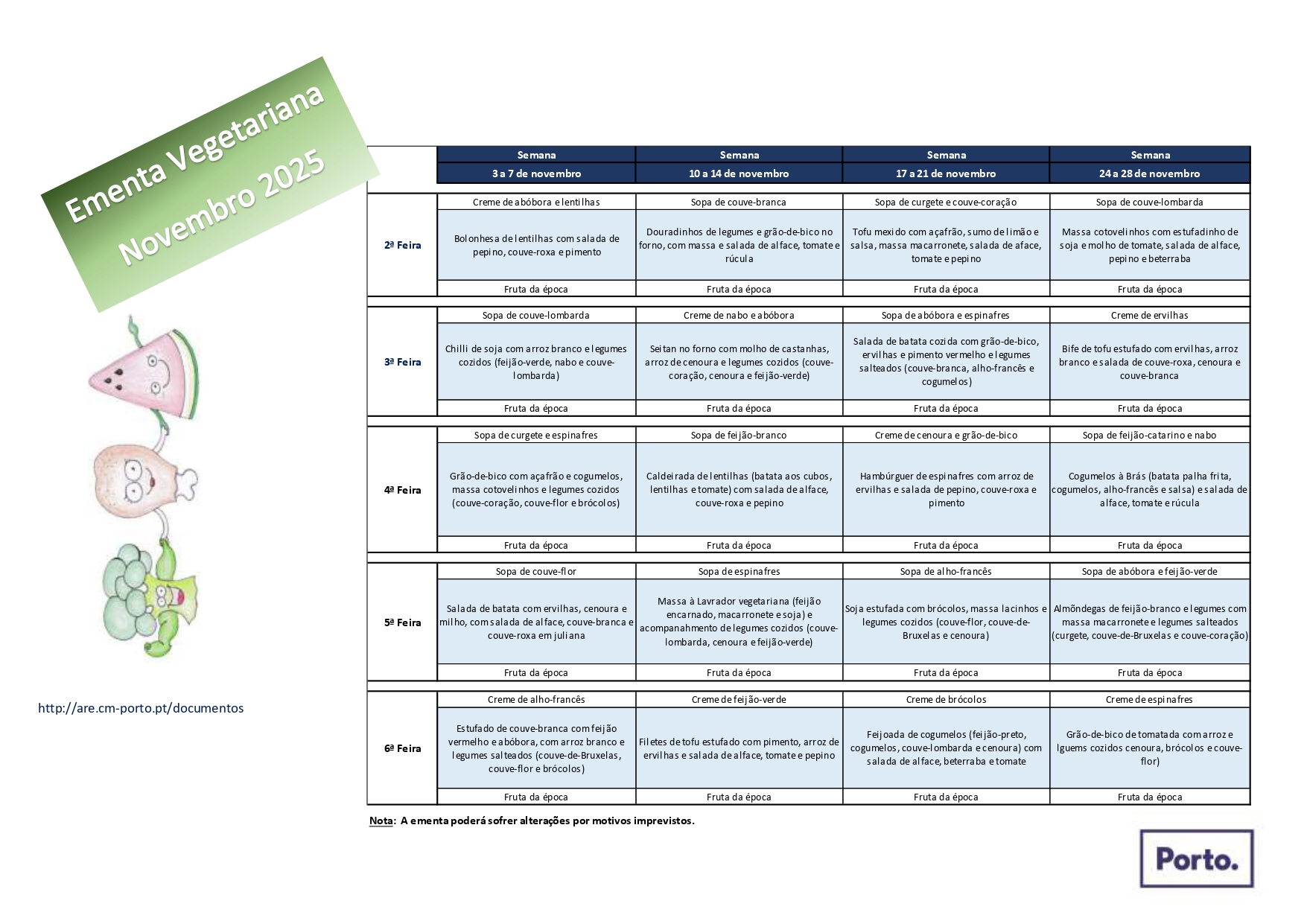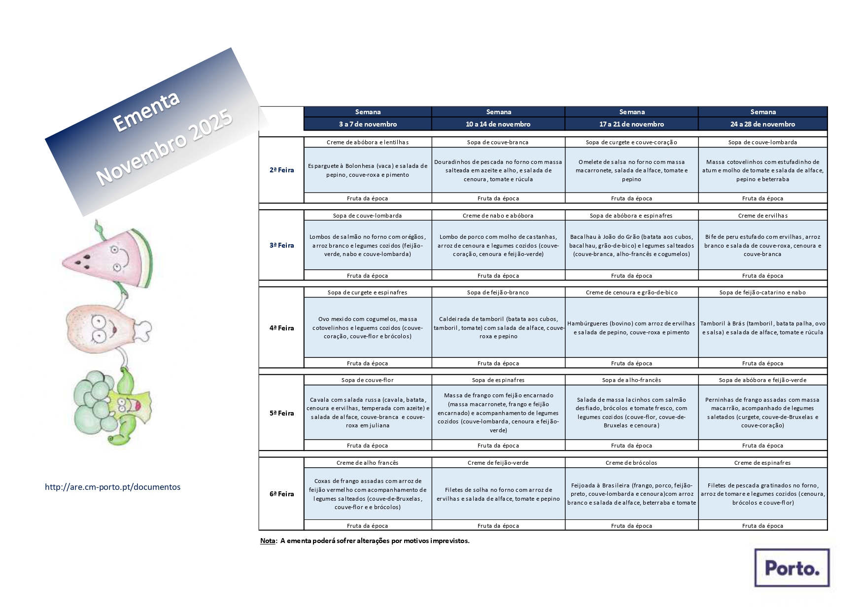 Clique na imagem da ementa desejada para a aumentar