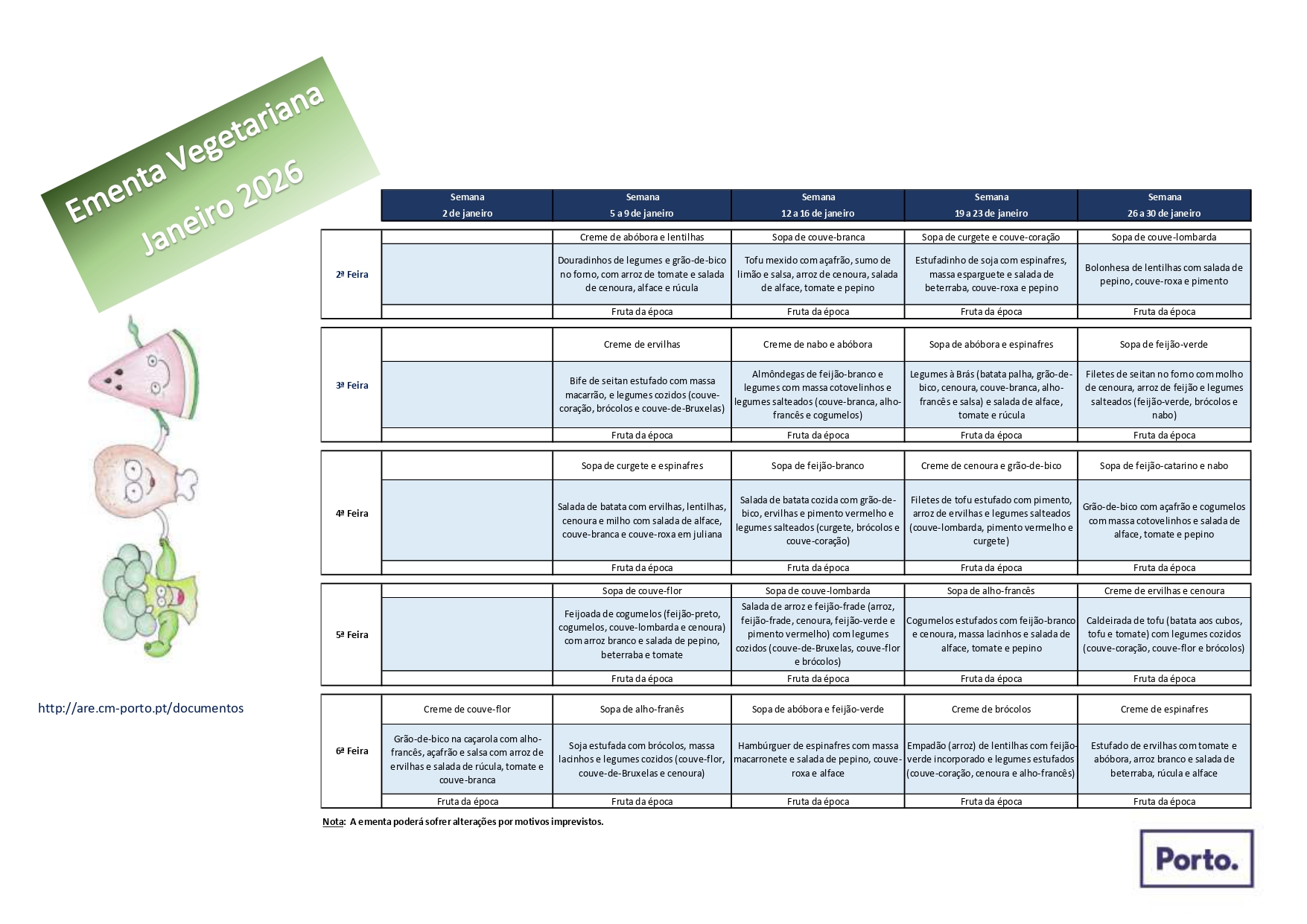 EMENTAS ESCOLARES(Informação da Câmara Municipal do Porto)