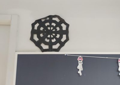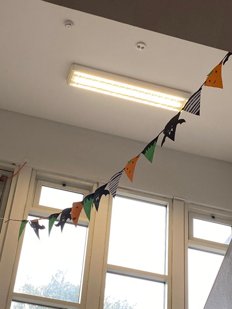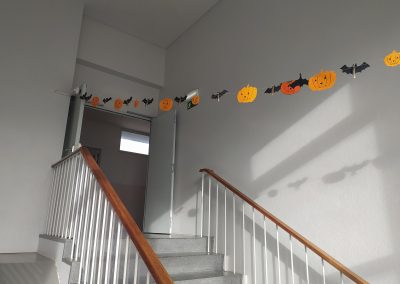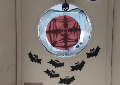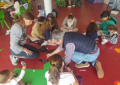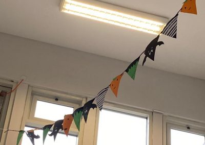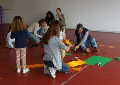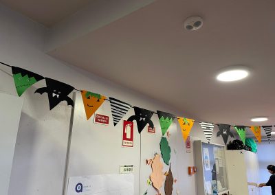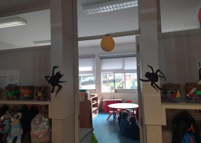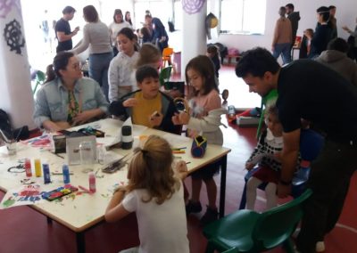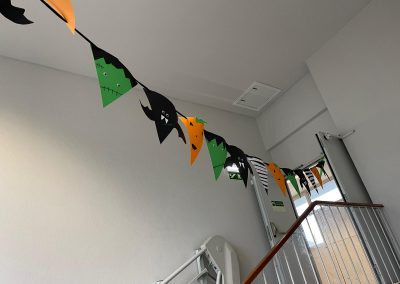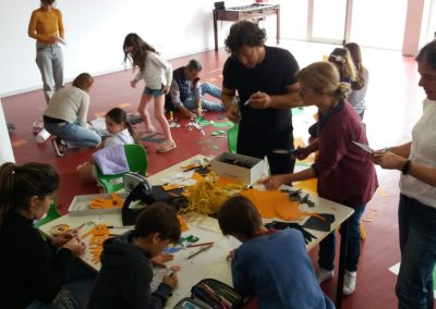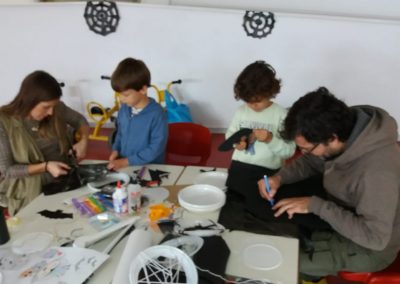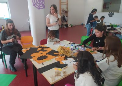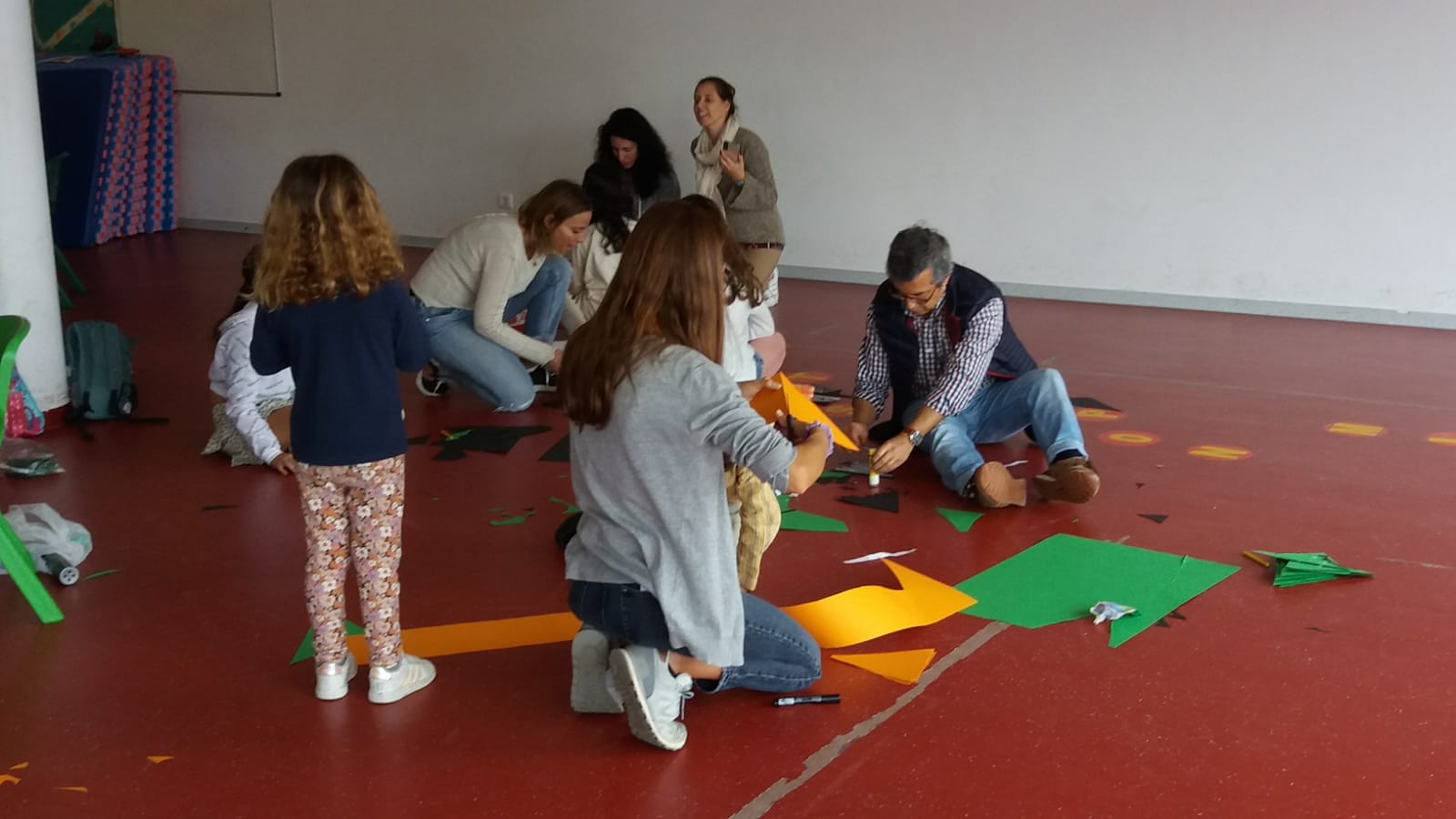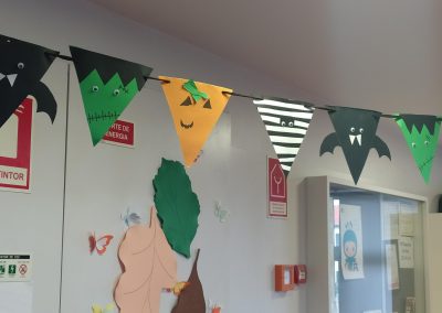 Pais, alunos, avós e outros familiares organizaram um wokshop no qual construíram enfeites alusivos ao Halloween para decorar os espaços da escola